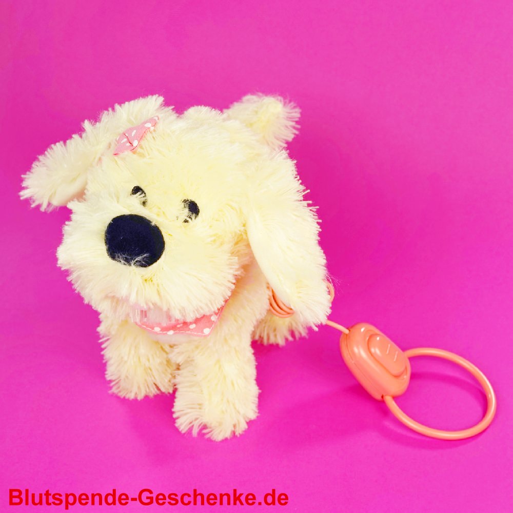 Sie sind hier: Blutspende-Geschenke.de » 3 x Blutspenden Geschenke Blutspendegeschenk Plüsch-Hund mit Fernbedienung Blutspendegeschenk Plüsch-Hund mit Fernbedienung läuft und bellt Blutspendegeschenk Plüsch-Bären 54 cm Blutspendegeschenk Plüschtiger weiss liegend