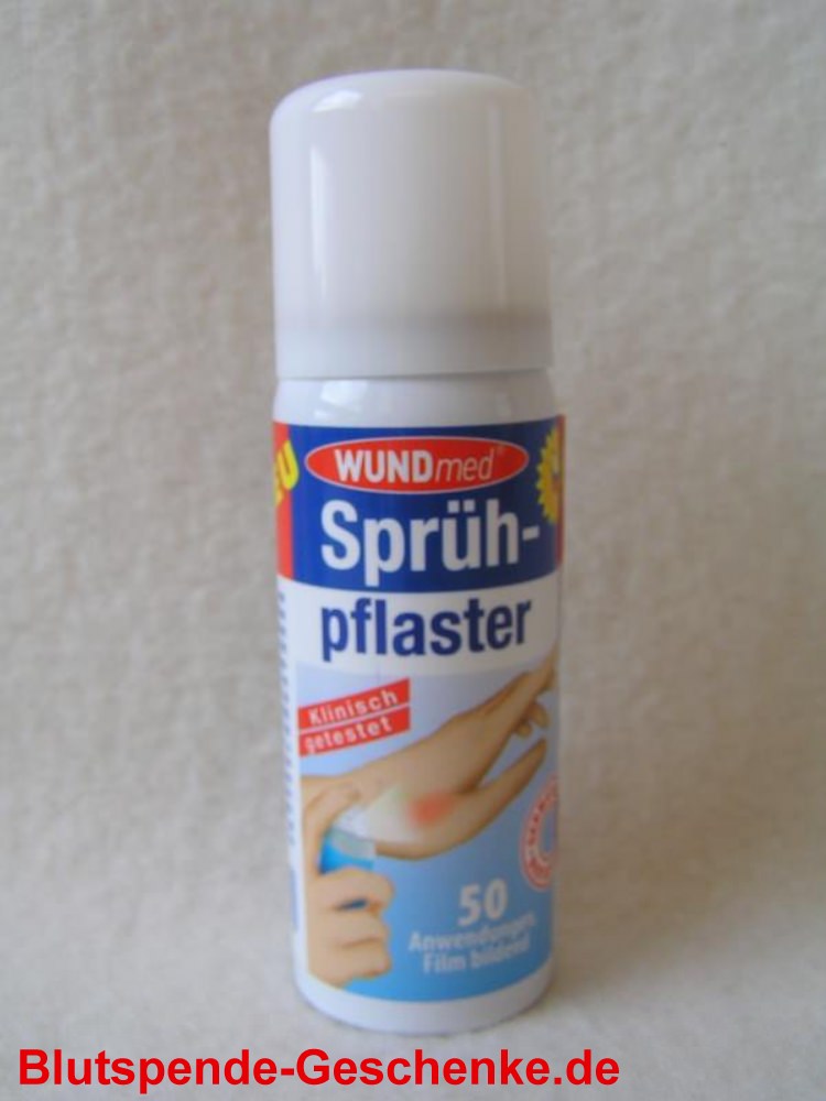 Sie sind hier: Blutspende-Geschenke.de » Blutspendegeschenke nach Kategorie » Pflaster & Verbandszeug Sprühpflaster Sprühpflaster 15340 Reiseapotheke Wundpflaster in Dose